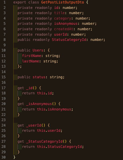 Post라는 테이블의 리스트를 가져오는 OutPut Dto이다.